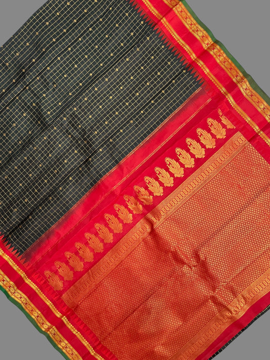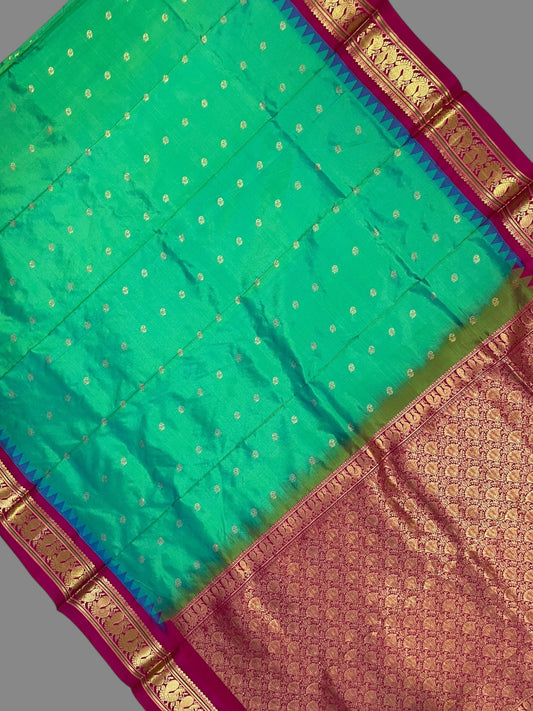 Kanchi Border Butta Bottle Green Pure Silk Saree