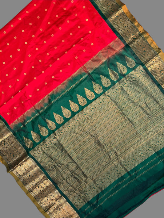 Gadwal Big Border Peacock Green Pure Silk Sarees