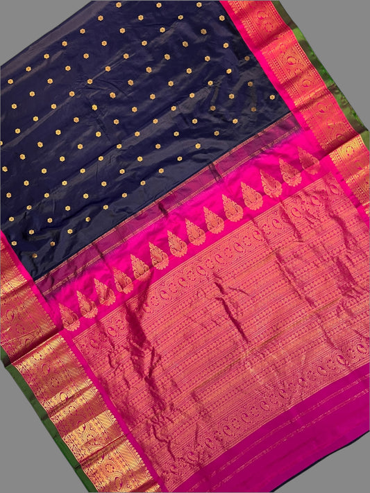 Gadwal Big Border Dark Blue Pure Silk Sarees