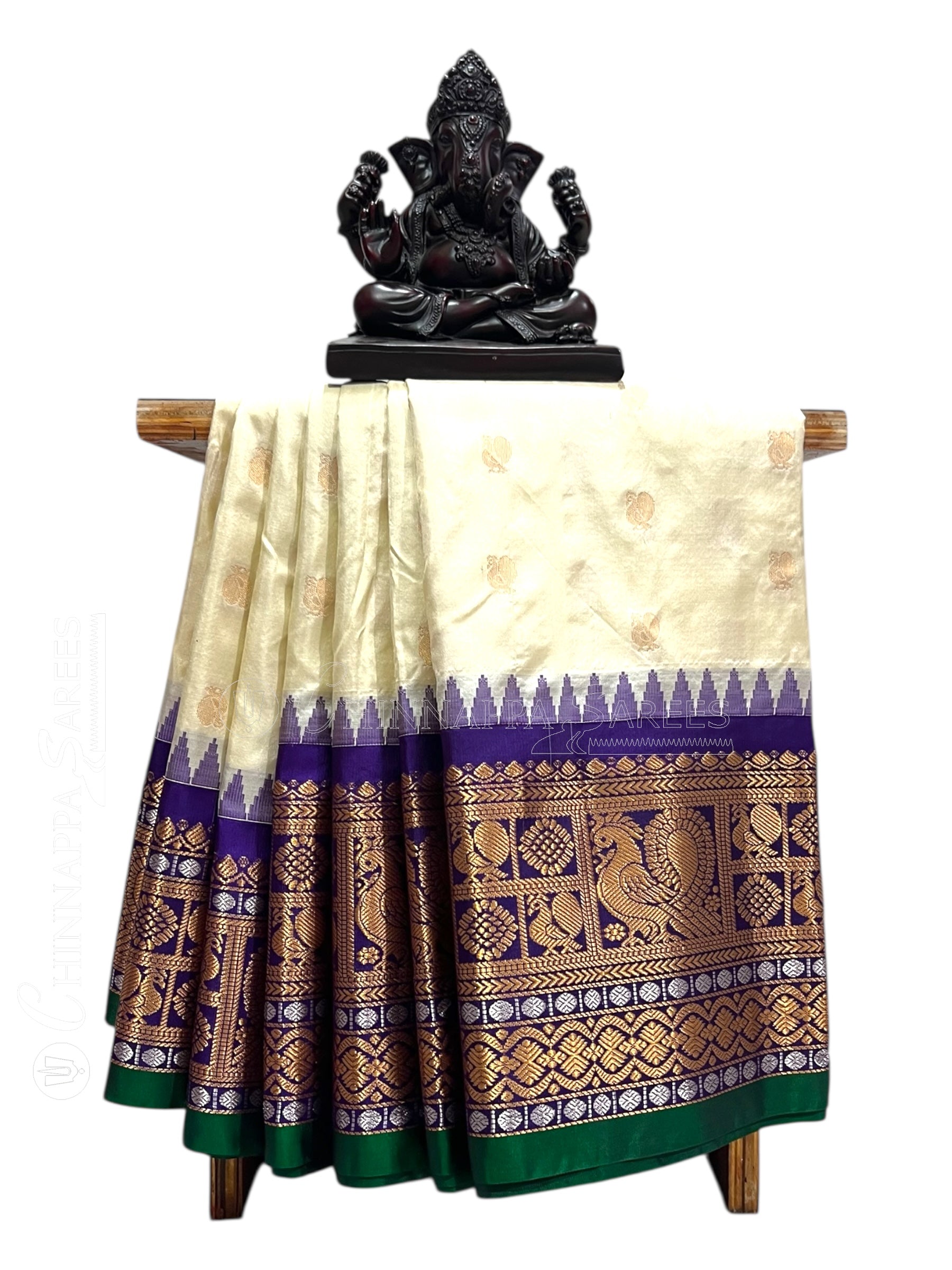 GADWAL PATTU SAREES are meticulously crafted garments renowned for their charm, breathability, and unparalleled comfort, making them a staple addition to any wardrobe. Each saree is intricately woven with either cotton or zari threads by skilled artisans, adding a touch of brilliance and distinctive style. These sarees are ideal for warm climates while offering a sophisticated appearance.