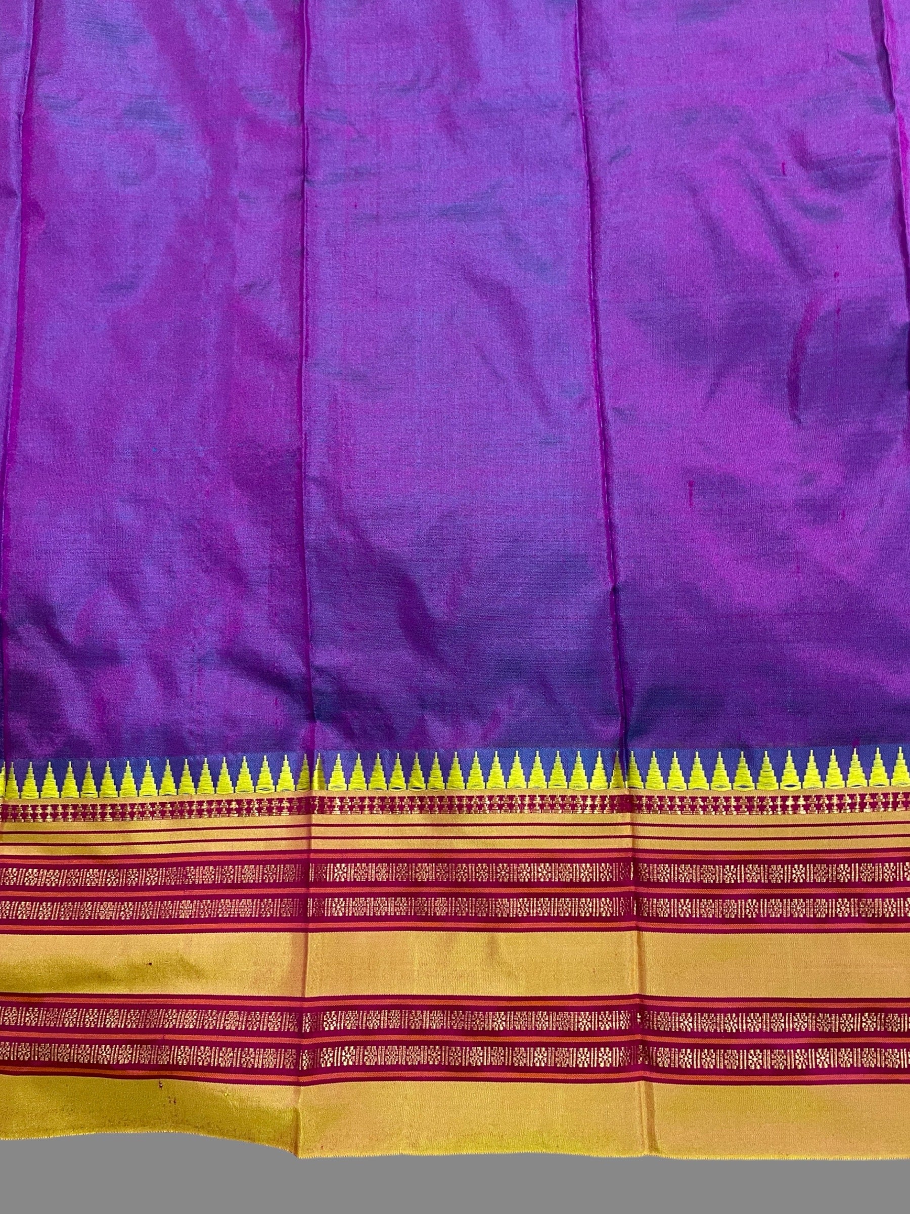 BORDERS : up : 4-5 inches ; lower : 4-5 inches Narayanpet borders on either sides of the saree. WASH / CARE : Colossal assiduity is required at every stage to preserve grandeur of silk.