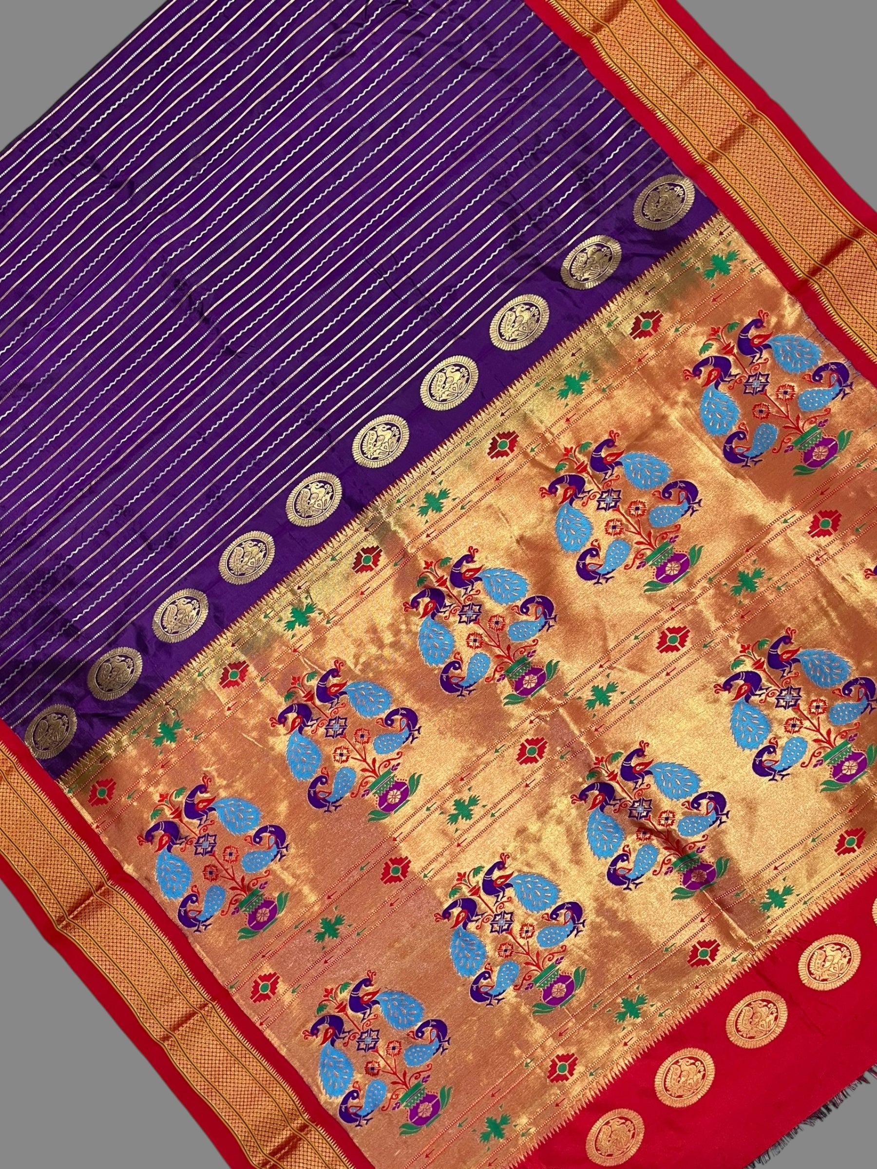 BORDERS : up : 6-7 inches ; lower : 6-7 inches Paithani Border on either sides of the saree.
