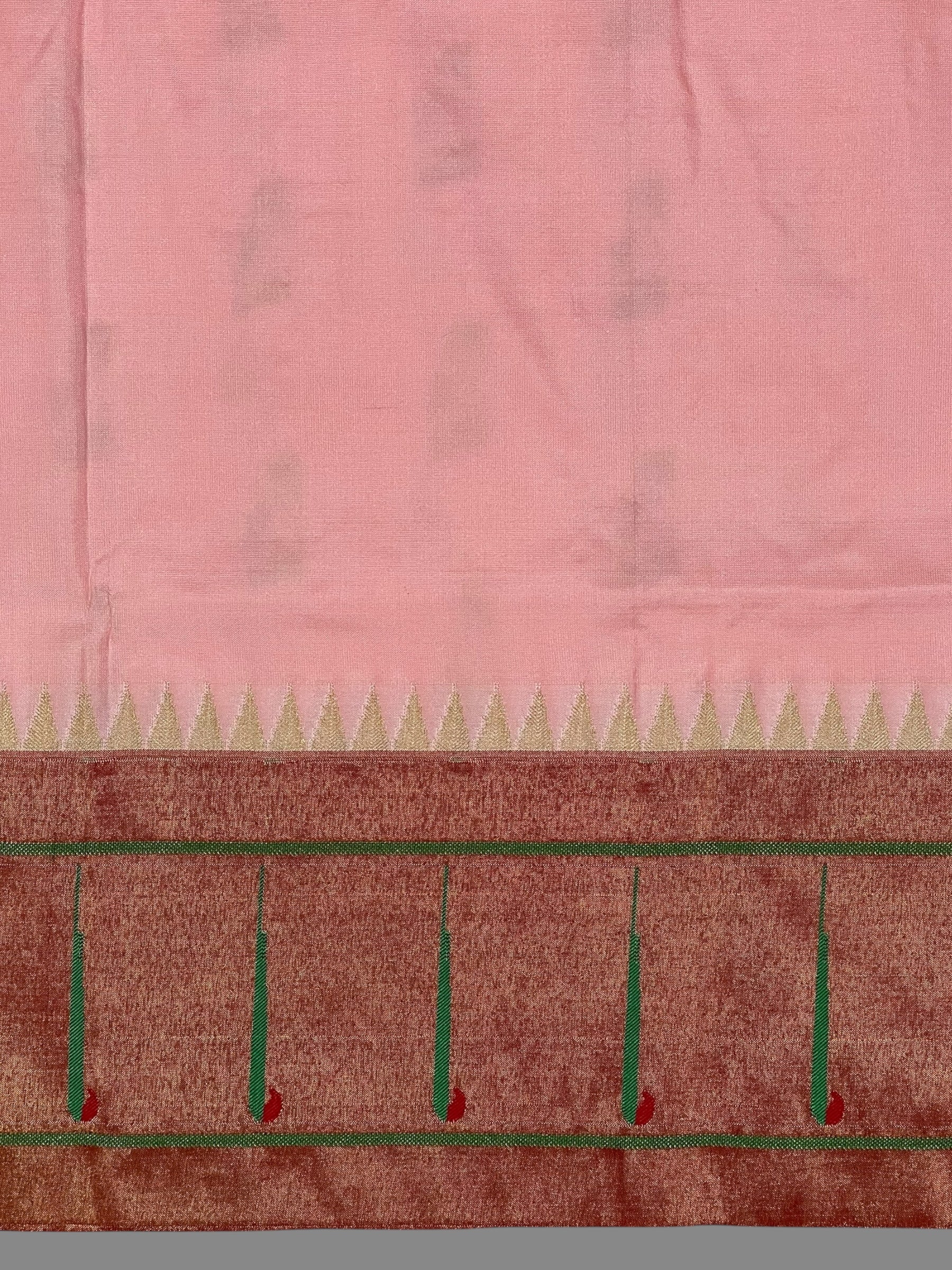 SAREE: Vibrant Kalanetha Peach Pink colour saree , enriched with zari intricate butte design and zari borders that brings inner royalty.